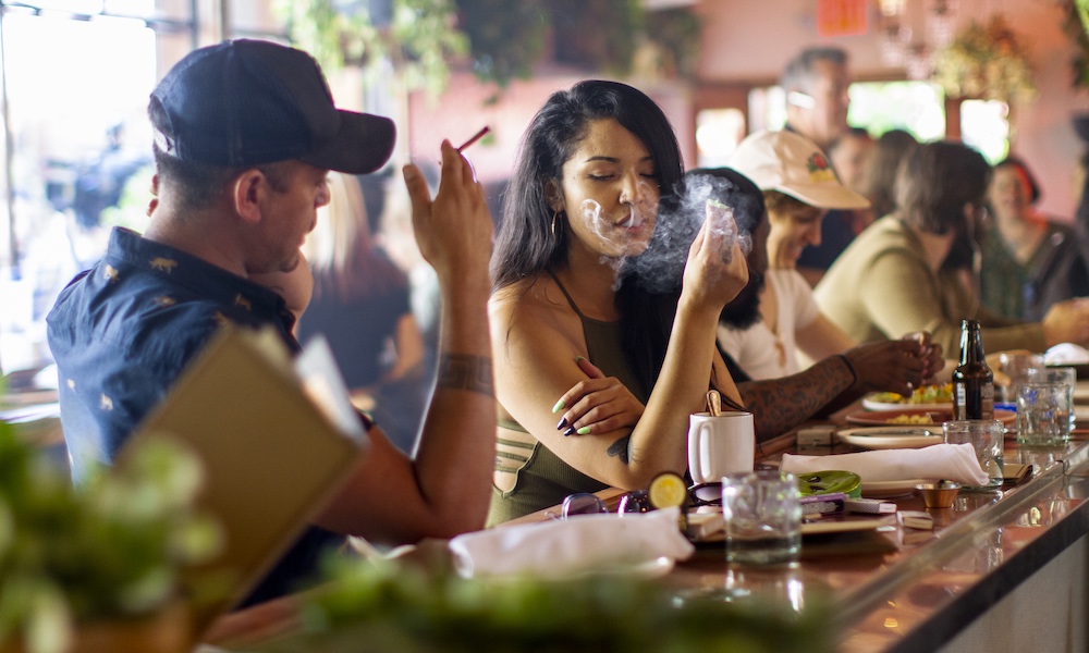 “This is absolutely a new freedom for all of us,” says Thomas Giordinello, co-founder of cannabis PR company Hotline Agency, who attended the cafe’s opening day. “There was sort of this incredible, intangible feeling everyone had, without having to say a thing, recognizing that this is a special opportunity. The fact that you can consume right on top of your food is fascinating.”