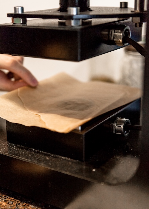 Once you’ve pressed long enough (some say three seconds, some say until you hear a sizzle) it’s the moment of truth. Peeling the paper or mat back the first time combines the anticipation of unwrapping a gift with the anxiety of waiting on test scores, but if you got it right you’ll know right away because you’ll see a golden halo of rosin around your now flattened bud.