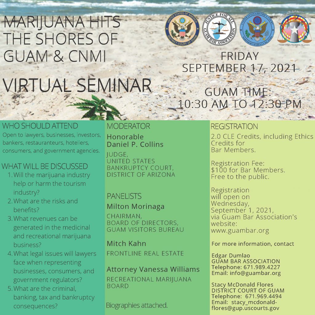 Federal courts representing the U.S. territories of Guam and the Commonwealth of the Northern Mariana Islands (CNMI) will be hosting a seminar next week on marijuana legalization and its potential impact on the tourism industry.