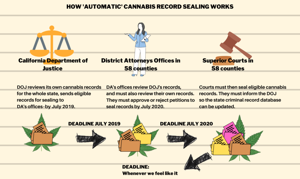 The DAs then had one year to approve or reject these petitions, by July 2020. Finally, county courts would have to seal the approved records and inform the DOJ, whiich would then update its own database of records.