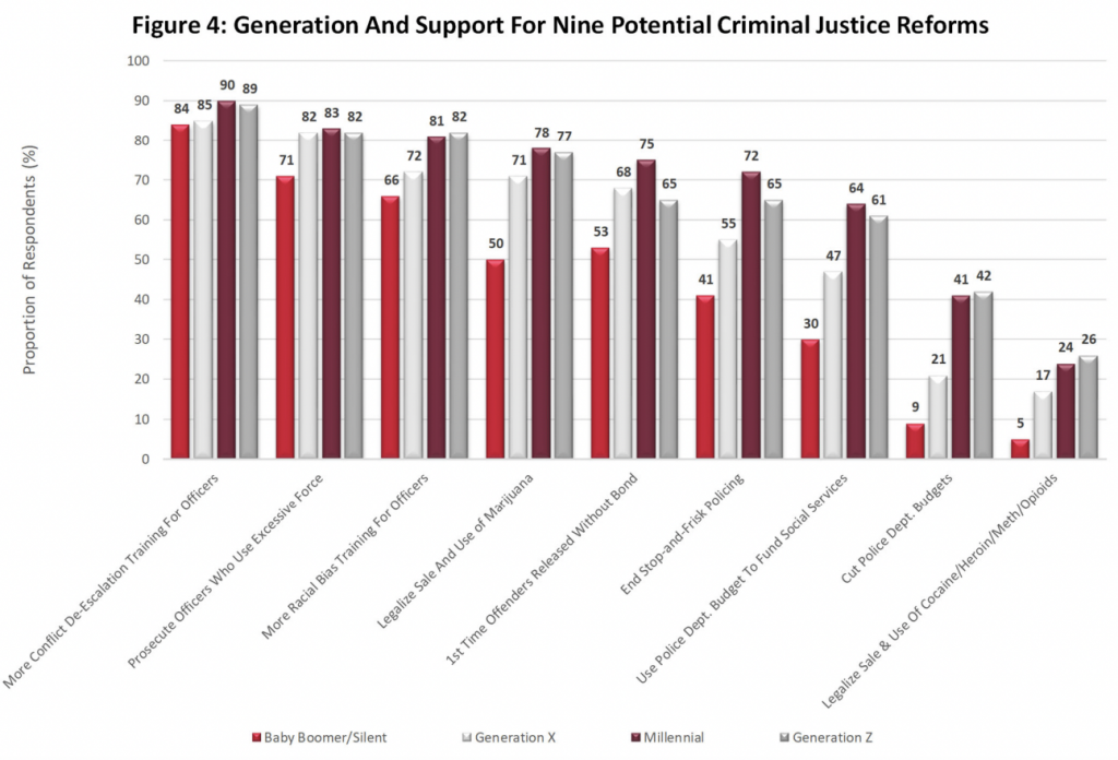 And while young people are more likely to say they want to end cannabis criminalization, 50 percent of Baby Boomers and the Silent Generation said they back marijuana legalization.