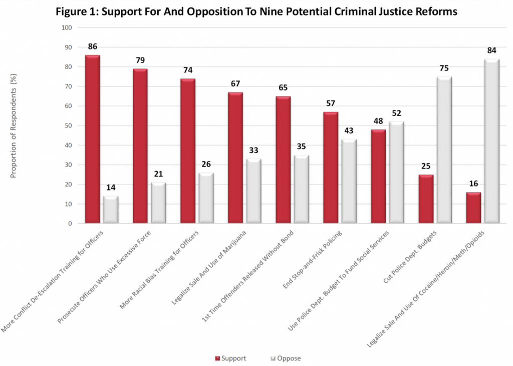Overall, the survey results—which also covered other criminal justice reform proposals outside of drug policy—were largely consistent with recent, national polling on the issue.