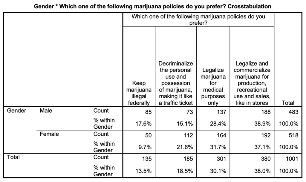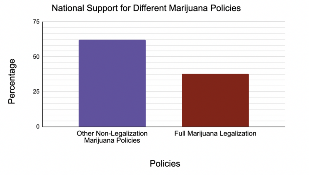 They included responses for prohibition, decriminalization and medical marijuana in that category, despite the fact that medical cannabis is a form of legalization that’s in effect in most states, and it was among the most popular options.