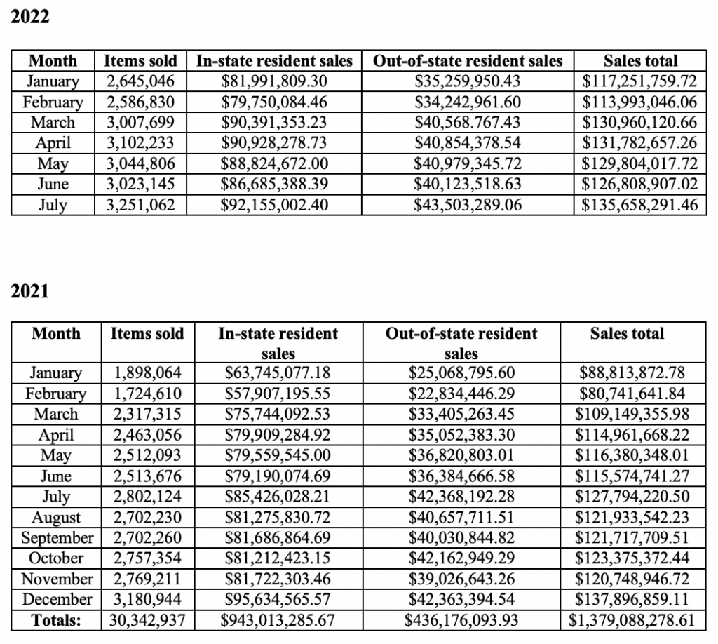 While the July sales figure is still about $2 million less than the state’s December 2021 peak, it’s a sizable monthly total during a year that saw cannabis purchases lag over the first few months.