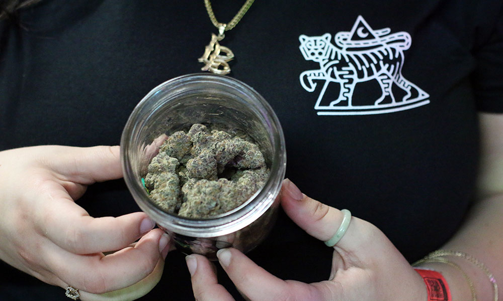 With my handy-dandy rolling kit in hand, the judging began. We inspected the nugs by shining our cell phone lights into the jars to illuminate the trichomes. We inspected the bud structure and pinched the flowers between our fingers to gauge the density and stickiness of each offering. We stuck our noses into the jars, searching for the one that made us raise our eyebrows and reach for the prettiest nug of the bunch.