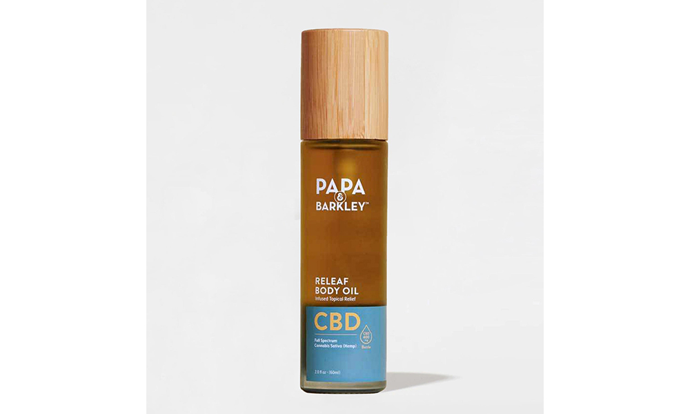 Highly regarded and more akin to a traditional facial skincare line is Papa & Barkley’s recently launched Releaf Repair Cream (150mg CBD + 150mg THC per 30ml bottle) which includes fresh-pressed rosin, jojoba oil, shea butter and mango seed oil. While Releaf Body Oil (400mg CBD per 60ml bottle) and their tiered-strength Releaf Balm range could be used everywhere, it’s effective as a healer to both inflammatory joints and bones even as it beautifies the body.