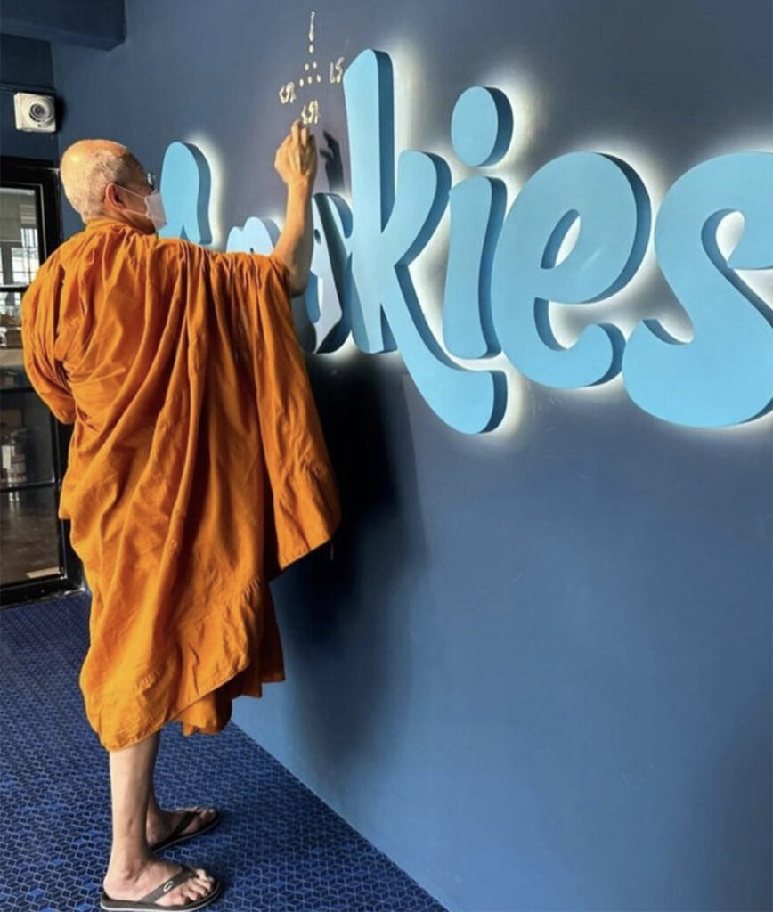 In keeping with Thai tradition, a Buddhist monk was on hand at the opening ceremony to perform a blessing of the new business establishment. And in compliance with Thai law, the dispensary is operating in full partnership with a Thai-registered company, Cookies Asia Co.