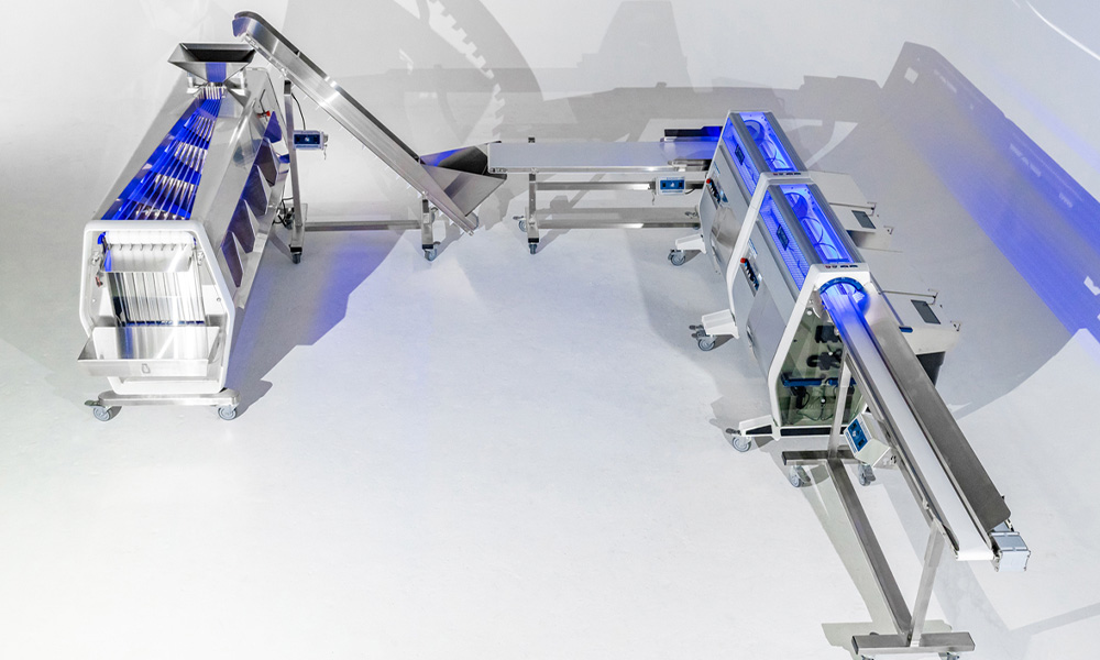 Mobius’ commercial conveyors expedite the processing of your cannabis for significant labor cost savings and improved product quality. Conveyors reduce contamination and improve quality control by removing human touchpoints. You can combine and match components to meet your needs or completely tailor your conveyors with full automation.