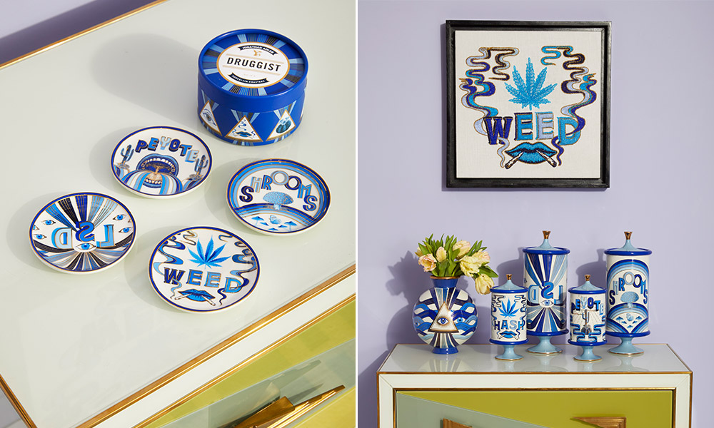 Acclaimed New York City-based potter, designer and author Jonathan Adler is perfectly poised at the intersection of high-end design and subversive style. Since launching his first collection at Barneys New York two decades ago, Adler has built a cult-like customer base with his covetable, tongue-in-chic ceramics and interior accoutrements. He correctly refers to his gorgeously recognizable design aesthetic as “modern American glamour.” Bullseye. Checking in on the celebrated designer’s views on drug iconography and the evolution of cannabis paraphernalia was sheer fun.
