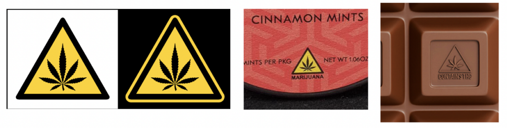 The International Intoxicating Cannabinoid Product Symbol (IICPS)—a yellow triangle with an image of a cannabis leaf and black border—has already been adopted by Montana, New Jersey, South Dakota and Vermont, while other states like Alaska are also considering it.
