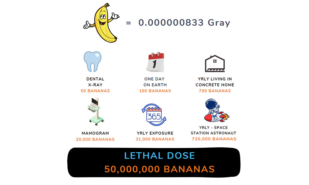 Bananas are one of the best-known instances of naturally occurring radiation in food. They contain relatively low and measurable levels of Potassium-40 (K-40), a fraction of which is radioactive, meaning bananas emit a minuscule amount of radiation. To put this into perspective, you’d need to consume approximately 50 million bananas in your lifetime to reach a lethal dose.