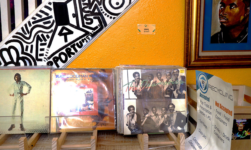 The budtender on duty is Dr. J. He’s worked for Green Muse off and on since the doors opened and tells me it’s fun when they all get to talk about a new strain and decide which artist fits the vibe, or when someone walks in and asks about that Bootsy Collins strain they used to have—and he’ll remember exactly what they’re talking about.