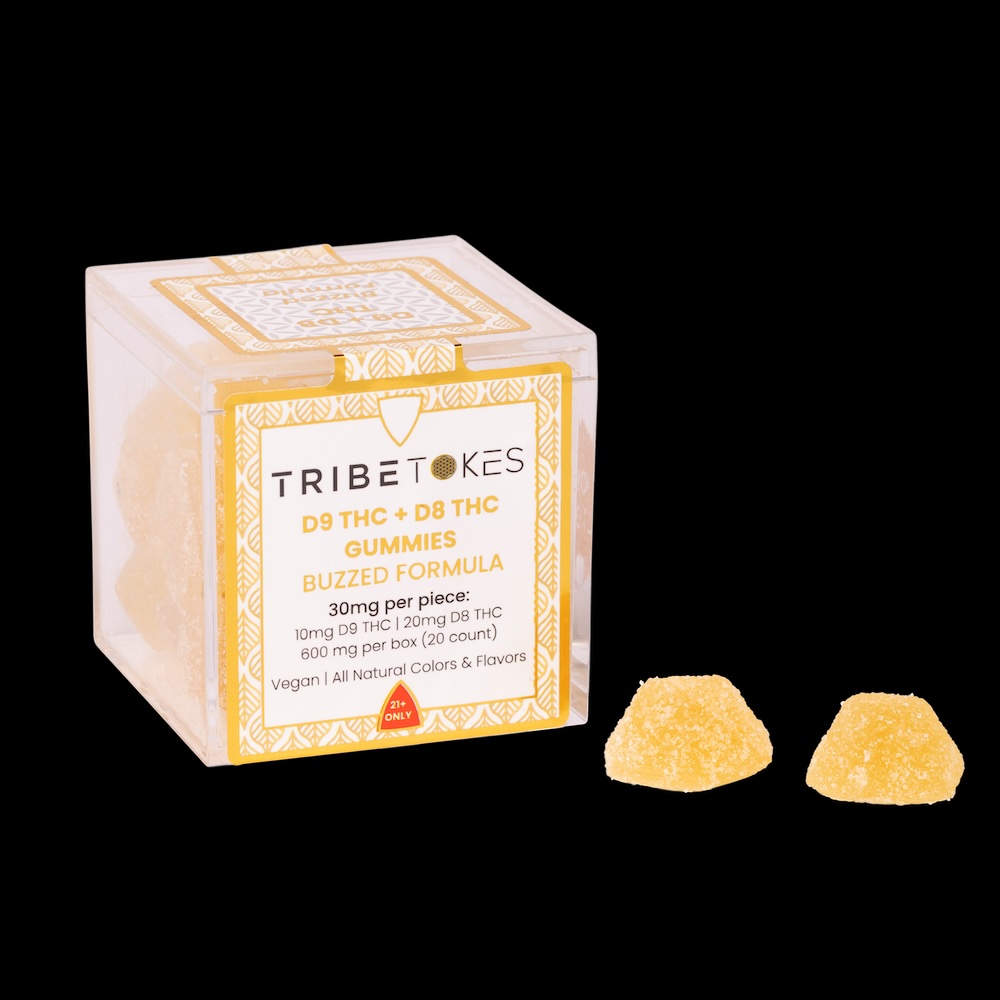 Formula: This specific edible was designed for experienced cannabis consumers committed to the journey. Buzzed delivers 10 mg Delta‑9 THC along with 20 mg Delta‑8 THC per gummy. This is a more potent combination than other edibles within the TribeTokes product portfolio.