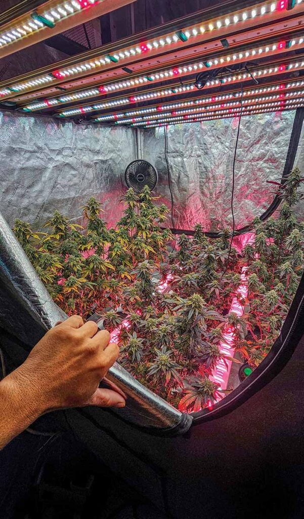 Automation: These days, tents can come with built-in or supplemental automation that controls the environment, feeds and waters your plants on a schedule and monitors any fluctuations in temperature, humidity or air pressure. This can be very convenient, as you can run it from your smartphone, but it shouldn’t replace human contact and the power of your eyes. Look at your plant’s leaves up close and in person to check for any deficiencies, diseases or pests.