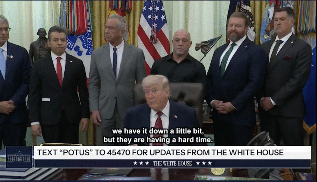 Joe Rogan’s presence during the White House announcement also reflects how much public conversation has shifted. For years, Rogan has platformed veterans, researchers, and physicians discussing psychedelic therapy as a serious alternative where conventional treatment has often fallen short.
